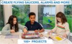 • PROJECTS THEY’LL LOVE: So many fun electric-powered projects you can make and play! Ages 8 to 108 will love building 100+ projects! Have fun while building practical skills and learning the basics of circuitry. Build a flying saucer in a snap and watch it take off and sound the alarm! Kit includes 29 Snap Circuits parts.