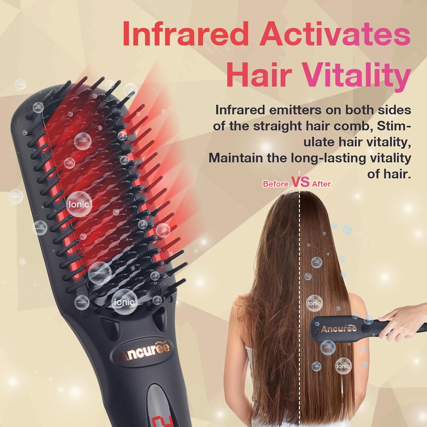 Newly Upgrade Ionic Hair Straightener Brush-Hot Comb Flat Iron for Frizz-Free Hair Styling,Straightening Brush with Negative Ions,One-Step Hair Straightener,16 Temp,LCD Display (Black)