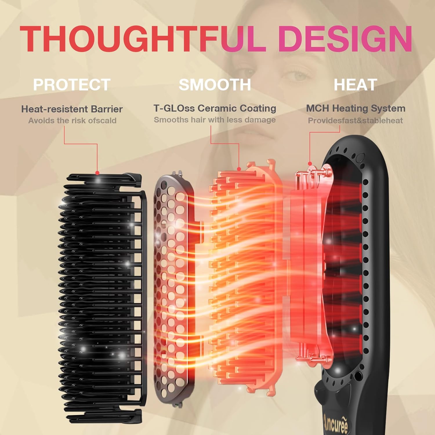 Newly Upgrade Ionic Hair Straightener Brush-Hot Comb Flat Iron for Frizz-Straightening Brush with Negative Ions