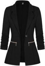 Genhoo Women’s Long Sleeve Blazer Open Front Cardigan Jacket Work Office Blazer with Zipper Pockets S-3XL