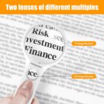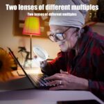 - 【Widely used】This new magnifying glass comes with a 3x magnifying glass and a 45x jeweler’s magnifying glass. Compared to 10X and 30X magnifying glasses, this magnifying glass has more diverse functions. The 3X lens magnifying glass is suitable for reading, amateur observation, exploration, and handicrafts, while the 45X lens is very suitable for miniature models or jewelry.
