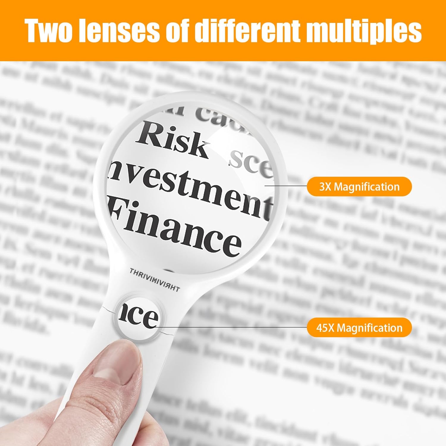Magnifying Glass with Light – THRIVINGIVAN 3X 45x Handheld Lighted Led Magnifier for Kids Seniors Reading Inspection Coins Jewelry Exploring (White)