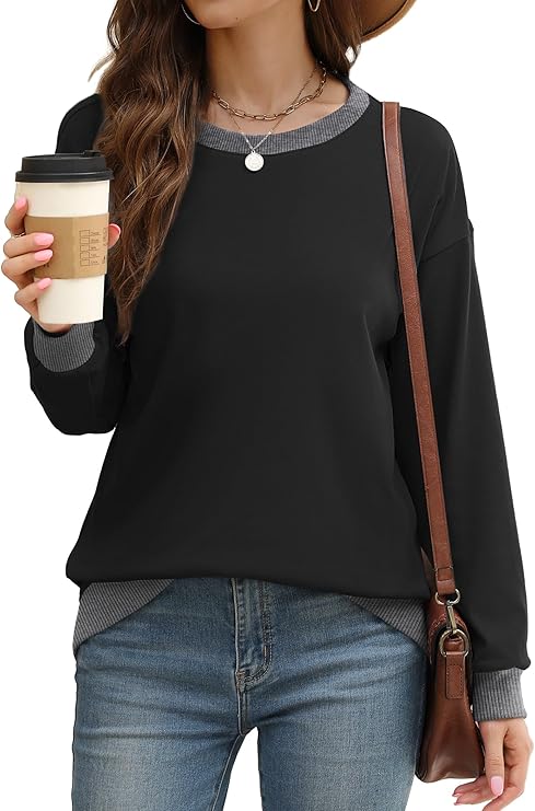 - ✦Unique Design: Color Block Ribbed Trim tops, crewneck sweatshirt loose fit, lightweight cozy sweaters, long sleeve comfy shirts. The contrasting trim makes it easy to show your unique personal fashion charm.