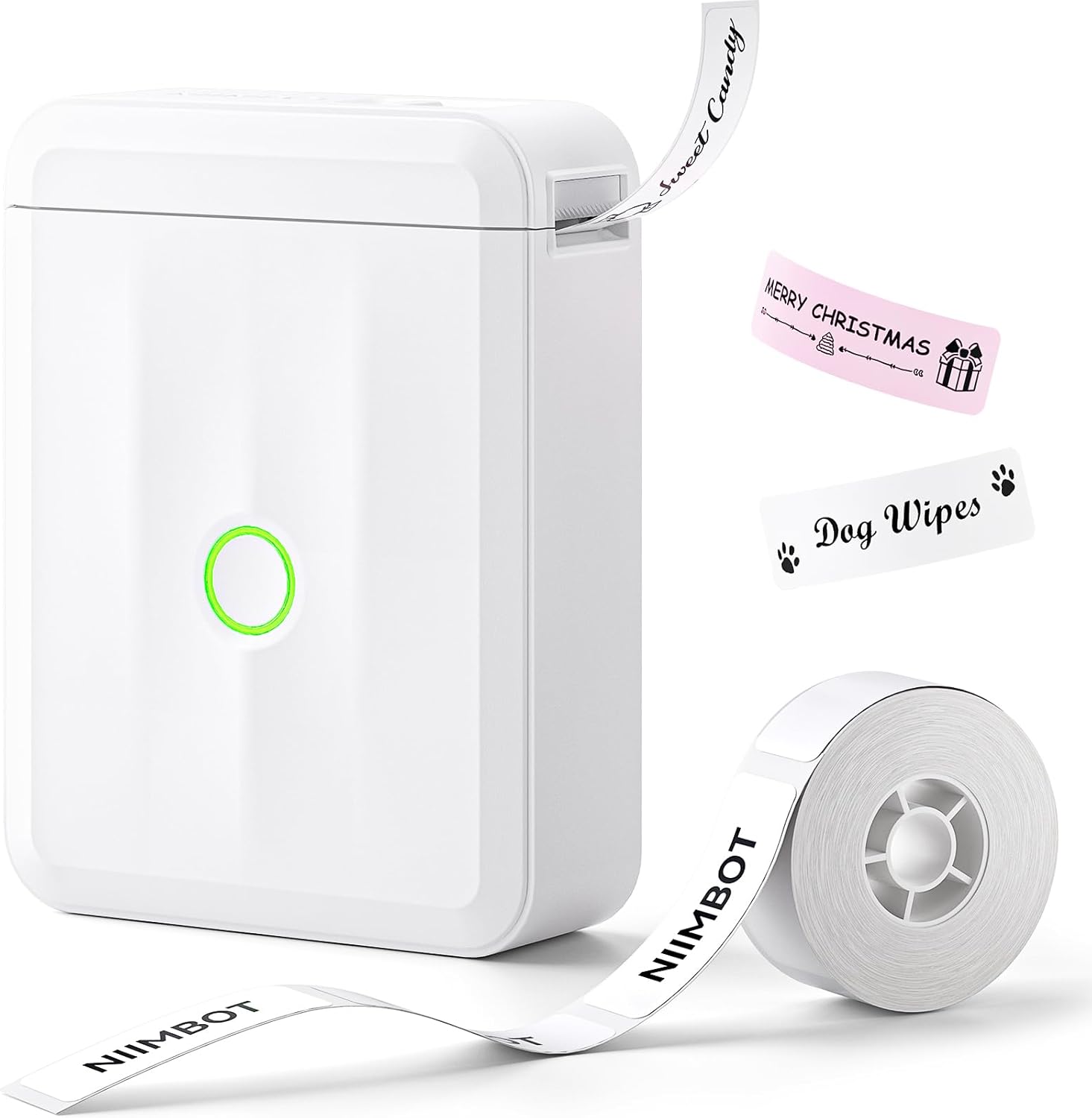 NIIMBOT D110 Upgraded Version Mini Label Maker Machine with Tape, Portable Bluetooth Thermal Printer, Sticker Labeler with Multiple Templates for Office Organization Home Kitchen School, White
