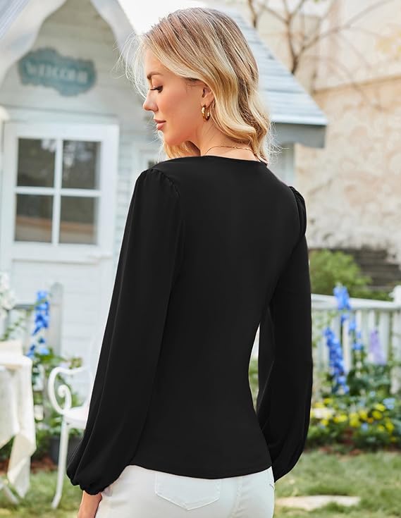 - 【Timeless Elegant Style】These womena tops have classic ruched and wrap design that never goes out of fashion. Whether you’re at work or out for coffee, this top adds a touch of sophistication. Easy to dress up or down for various occasions
